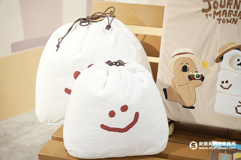 整體設計風格溫和可愛搭配絨毛材質,兼具實用與童趣風格,讓旅行時光更加暖心和歡樂。本次合作商品也同步於萬國通路創意觀光工廠館內的沉浸式空間快閃區展出,除了可以與IP角色拍照打卡,和角色們一起探尋「世界上最好吃的棉花糖」的蹤跡,也能於現場參觀及選購合作商品。