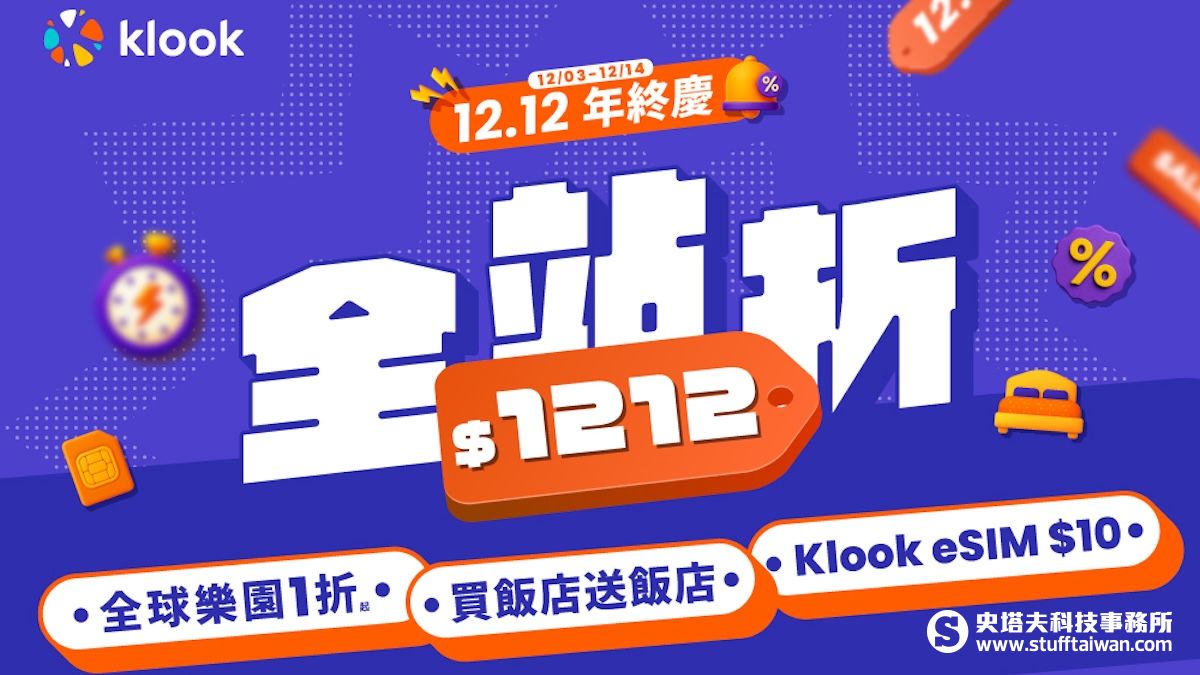 為感謝旅客一整年支持,並看好年底出國熱潮,全球線上旅遊領導品牌 Klook 重磅推出 「雙 12 年終慶」,橫跨 12 月 3 日至 14 日連續 12 天,天天有好康,讓年底出遊撿便宜更容易!活動祭出多重驚喜優惠,包括「全站折 $1,212 元」、「買 1 送 1」、「飯店最高折 $2,000 元」以及「eSIM 10 元」等多項好康。