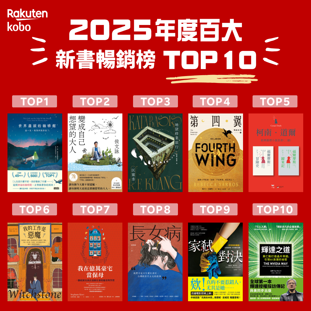 樂天 Kobo 提供超過 800 萬本中外文電子書,其中的中文電子書超過 30 萬本。樂天 Kobo 於即日起推出「樂天 Kobo 2025 年度台灣百大暢銷榜」書展,相關參展書享單本優惠 79 折起,陪伴讀者在新的一年持續成長。