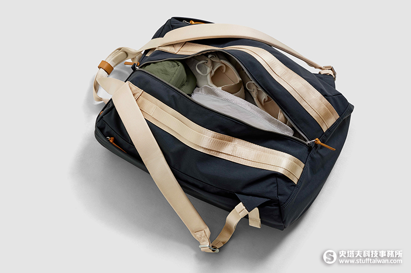 旅行後背包則可手提或後背,符合國際航班尺寸,大容量、智慧收納口袋,以及背部大開口,輕鬆收納鞋履,適合短途旅程。
