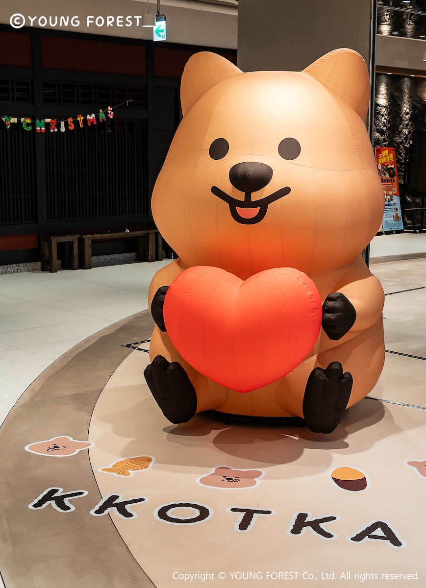 在《勾卡KKOTKA》快閃店遠處就能看到高達200公分的充氣玩偶「愛心勾卡KKOTKA」,抱著紅心的勾卡KKOTKA萌力爆發,光是看到就感受到快樂氛圍呢!