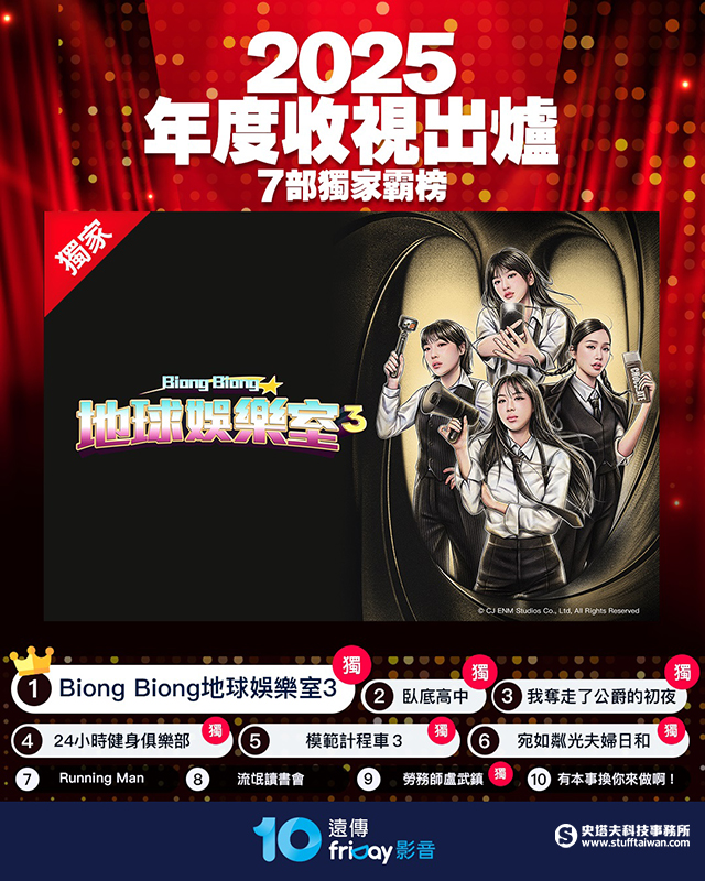 遠傳friDay影音2025年榜揭曉:韓綜《地球娛樂室 3》破紀錄奪冠,日劇強勢回歸三分天下!