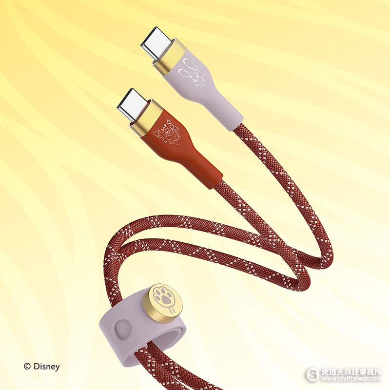《動物方城市》聯名充電線以尼克與朱蒂圖樣分別點綴兩端,矽膠線體與防磨損雙編織尼龍外層,持久耐用,相容多款裝置。