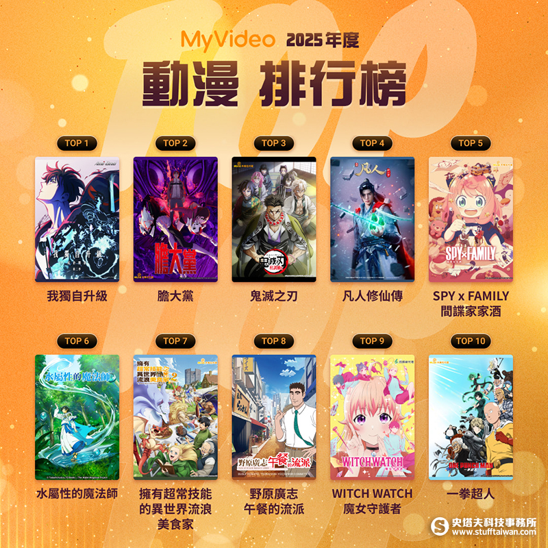 MyVideo公布2025年度榜單:動漫「美食×日常」破圈,台劇《零日攻擊》奪冠,知識內容需求增!