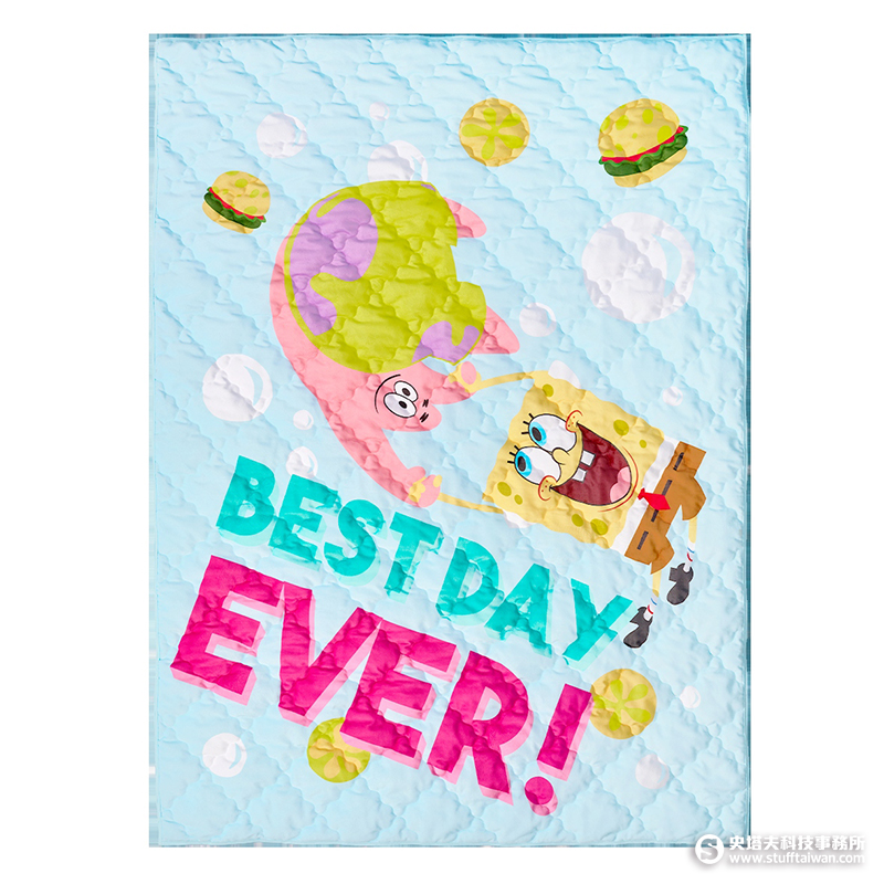 此外,還有柔軟得讓人想埋進去的「海綿寶寶 隨身輕巧被」,由比奇堡最佳拍檔海綿寶寶與派大星聯手出擊,在被被上快樂共舞,任何人都能輕易被感染喜悅!四季皆宜的親膚柔軟材質,睡眠也能保濕肌膚,整體十分輕便,直接把快樂與美麗隨身帶著走!