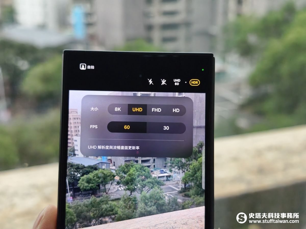 Galaxy Z TriFold採用200MP Samsung HP2(1/1.3吋)+12MP超廣角+10MP 3x光學變焦,相機介面中可選擇0.6x、1x、2x、3x,其中2x是利用主相機裁切。在錄影方面,最高支援8K/30fps或4K/60fps。