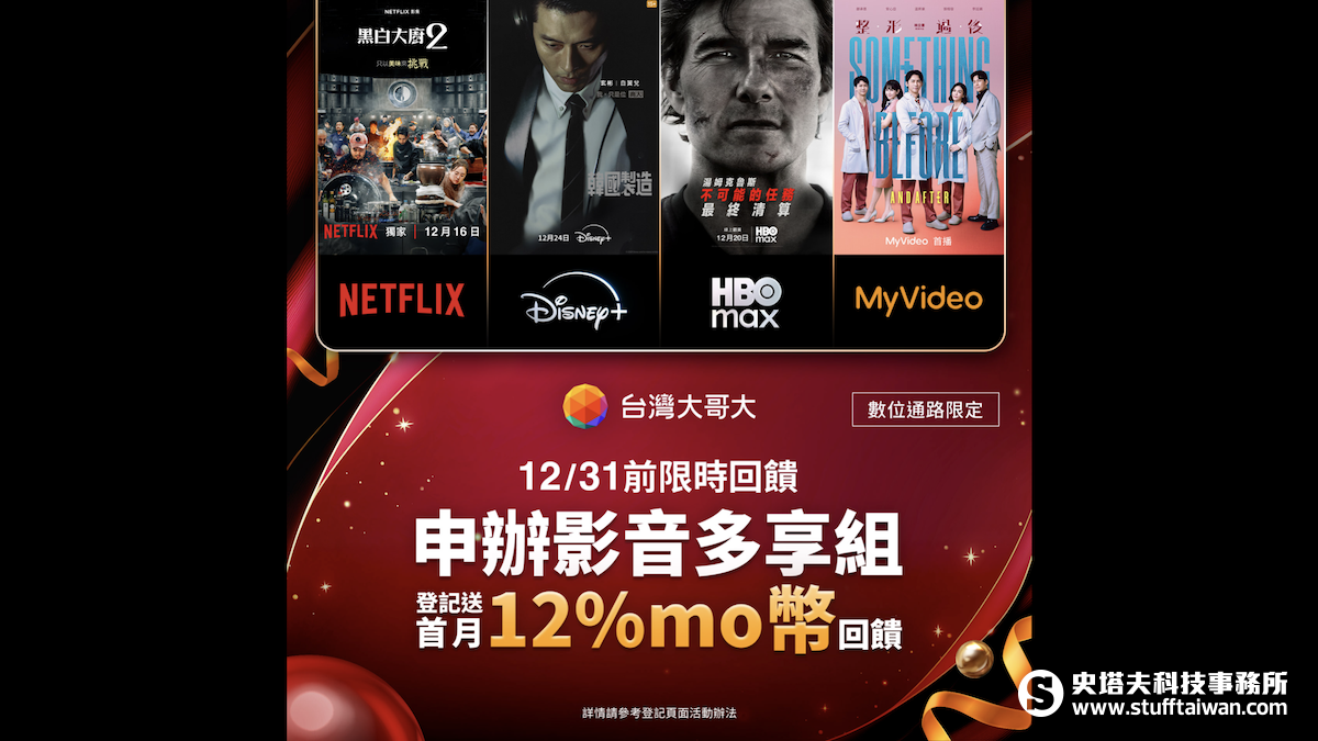 台灣大哥大「影音多享組」11月銷量激增4成:單一帳單管理四大平台,月付290元起加碼12%回饋