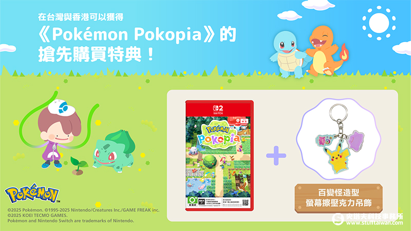 搶先購買Nintendo Switch 2專用軟體《Pokémon Pokopia》即可獲得原創百變怪造型螢幕擦壓克力吊飾!在台灣、香港的早期購買者,皆有機會獲得本早期購入特典。