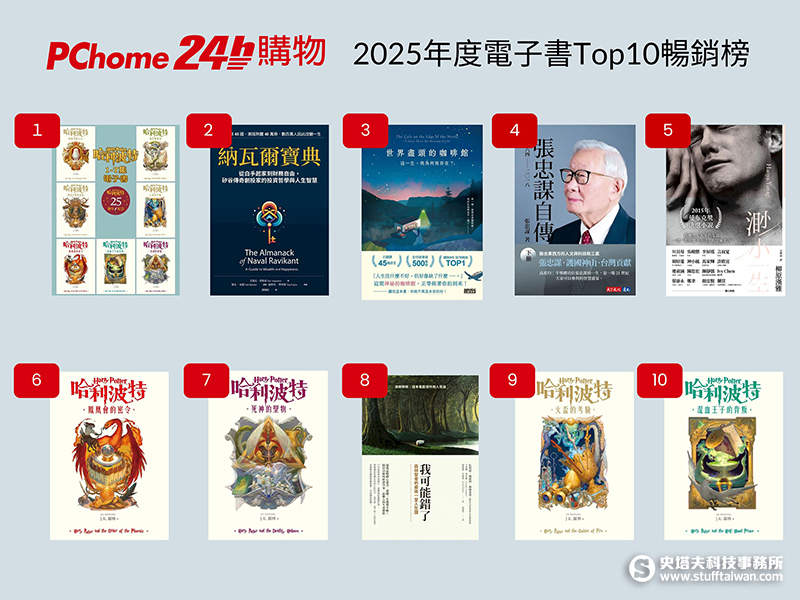 PChome 2025電子書榜單出爐!《哈利波特》、《納瓦爾寶典》與《張忠謀自傳》皆入榜