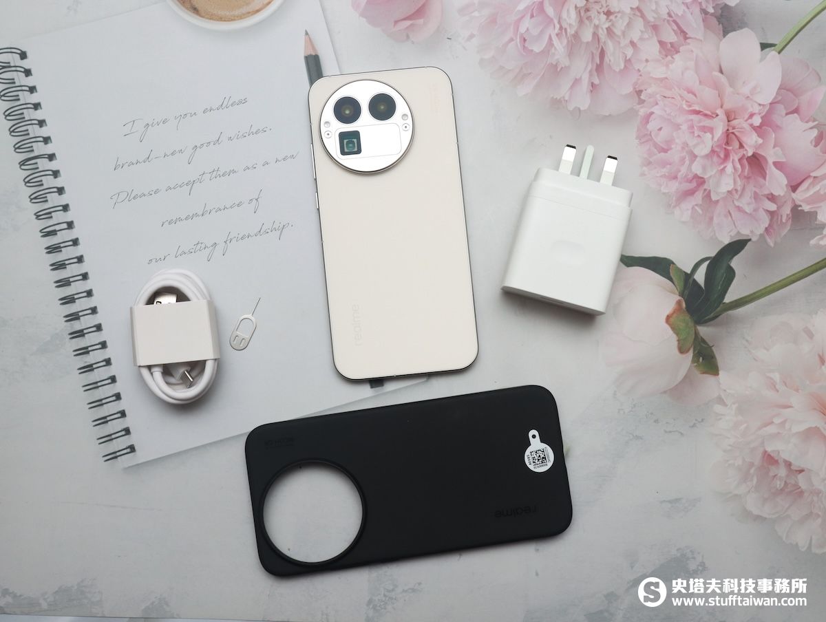 ⬇️realme GT 8 Pro配件有傳輸線、退卡針、黑色保護套、充電器等配件,手上借到的是英國版充電器,台灣版會是雙扁孔充電器。