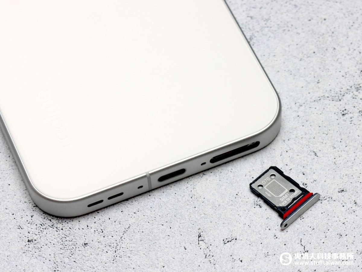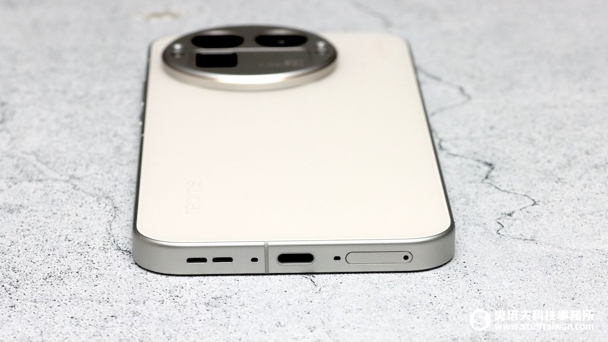 ⬇️realme GT 8 Pro機身底部有喇叭孔、麥克風、USB-C孔、卡槽。
