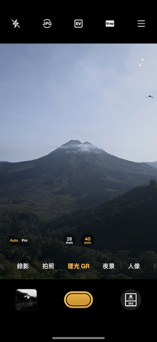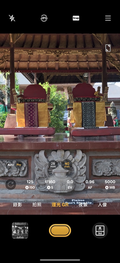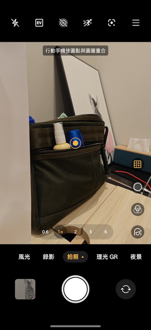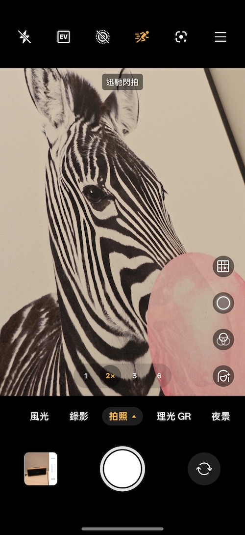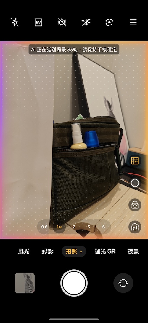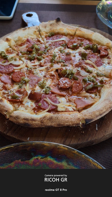 realme GT 8 Pro進入內建的相機功能時,在螢幕上的拍照鍵往下滑可進入理光 GR模式,在理光 GR模式的拍照鍵下滑可回到原相機模式,切換時很絲滑流暢。