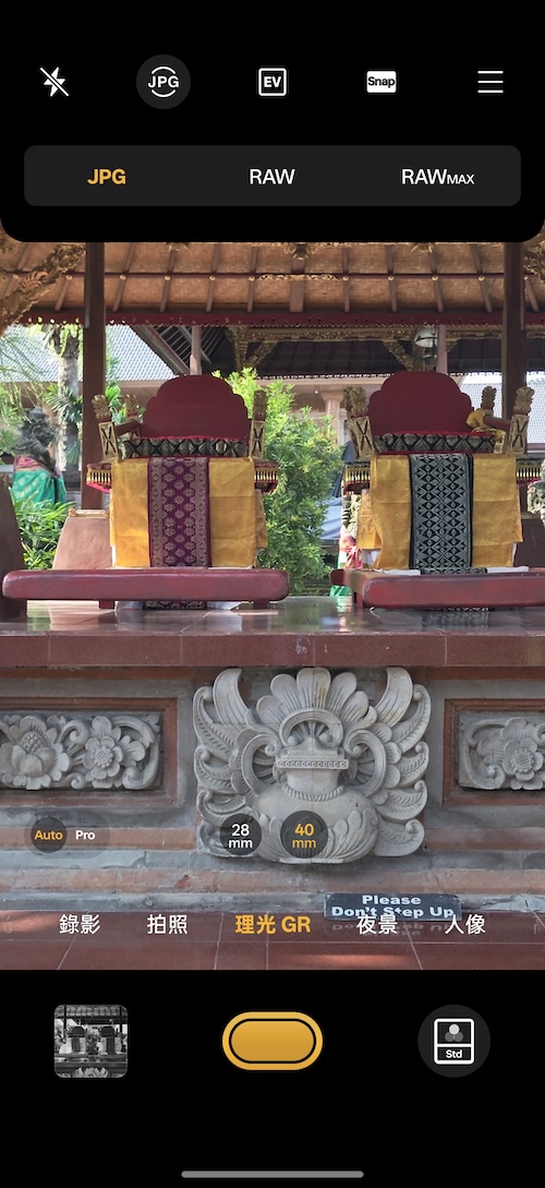 realme GT 8 Pro內建理光 GR影像系統及影調配方,並支援經典焦段28mm40mm,這兩個焦段被譽為街拍的黃金焦段,能呈現超越人眼周邊視角的畫面張力,在28mm與40mm的圖示按一下還有35mm與50mm兩個焦段可以使用。內建標準、正片、負片、單色、高對比度黑白五種底片風格影調,根據不同場景來切換。
