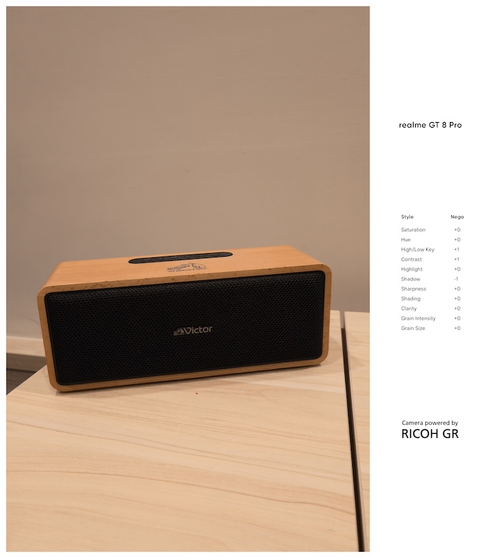 負片風格是realme GT 8 Pro的理光 GR模式中最柔和、也最「生活感」的一種調性,畫面對比度刻意降低,色彩表現偏向自然與溫潤,特別是膚色呈現相當穩定,沒有過度美顏或銳化的痕跡。尤其適合陰天或光線較平淡的環境,負片風格能拍出舒服、不灰暗的畫面,暗部資訊保留完整,亮部也不會過曝。在日常紀錄或隨手拍人像時,長時間觀看不易產生視覺疲勞,是五種底片風格中最耐看的一種影調。
