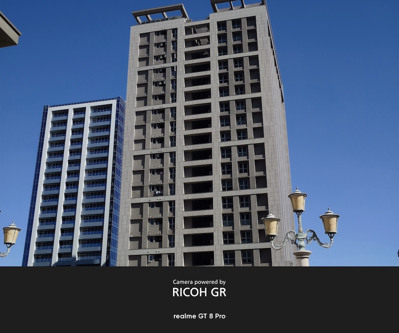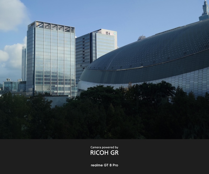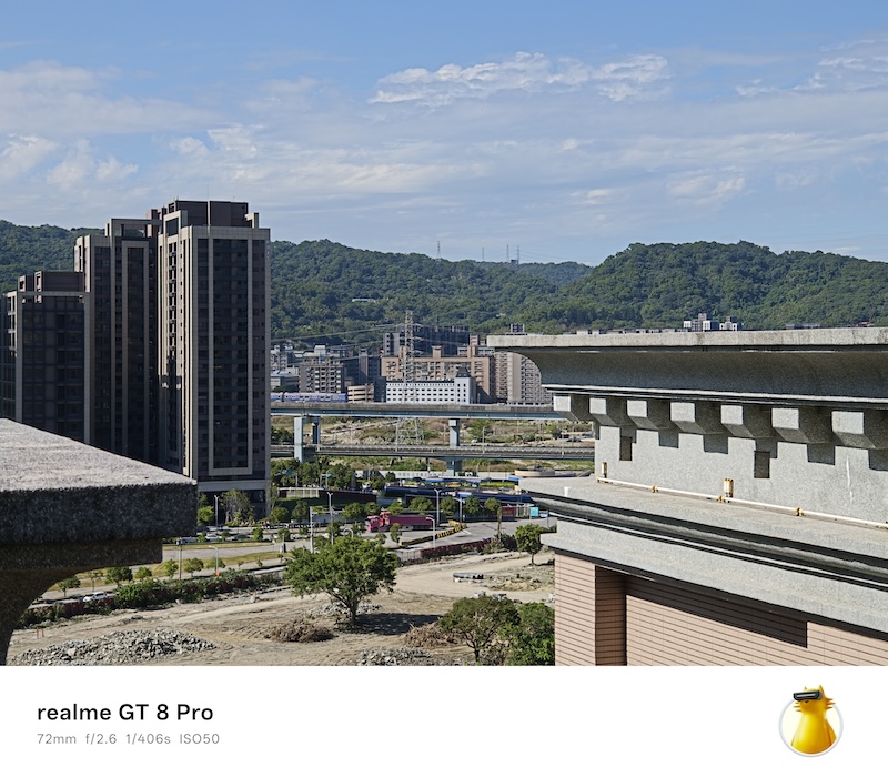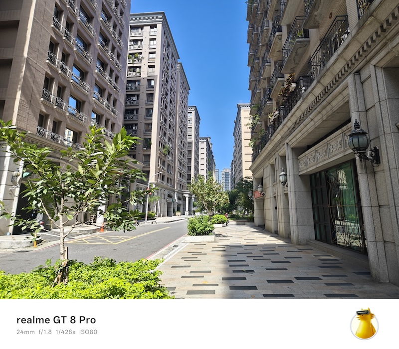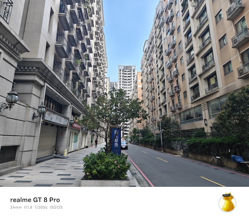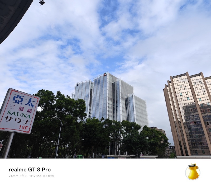 realme GT 8 Pro的正片風格在晴朗天氣下的表現最能展現其魅力,影調走向明亮且富有立體感,色彩飽和度提升得恰到好處,藍天、建築外牆與街景元素看起來乾淨俐落,畫面有一種「一拍就能用」的完成度。這種風格在旅遊拍攝或美食記錄中特別討喜,整體對比略高,讓畫面看起來更有精神。不過正片風格對光線條件相對挑剔,若遇到逆光或陰影比例偏高的場景,高光保留空間較小,暗部細節容易被壓掉,因此更適合在晴天、藍天的情境拍攝。