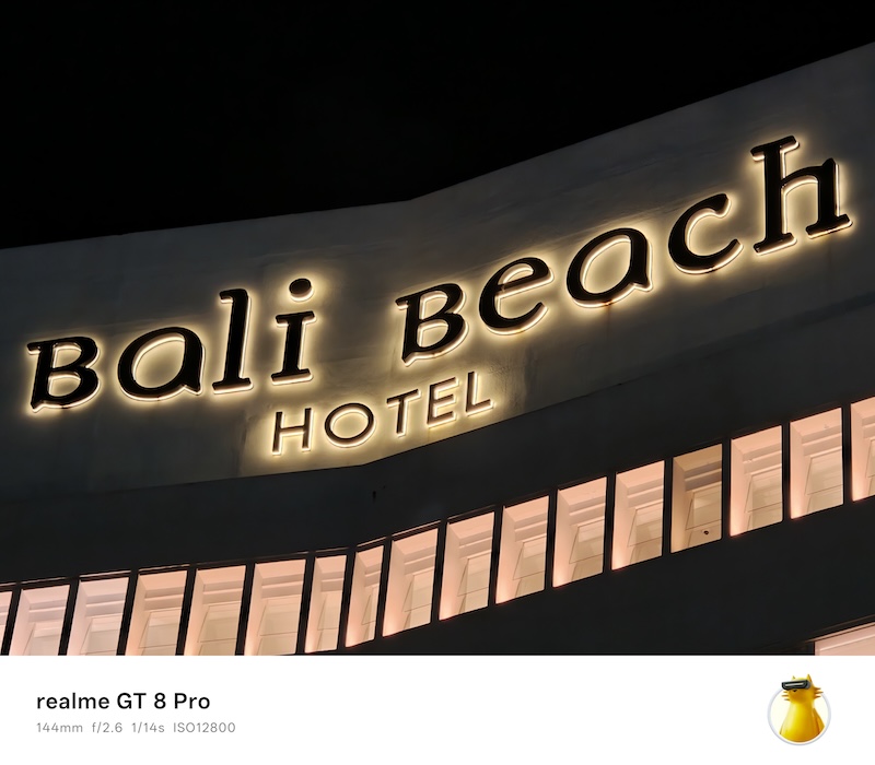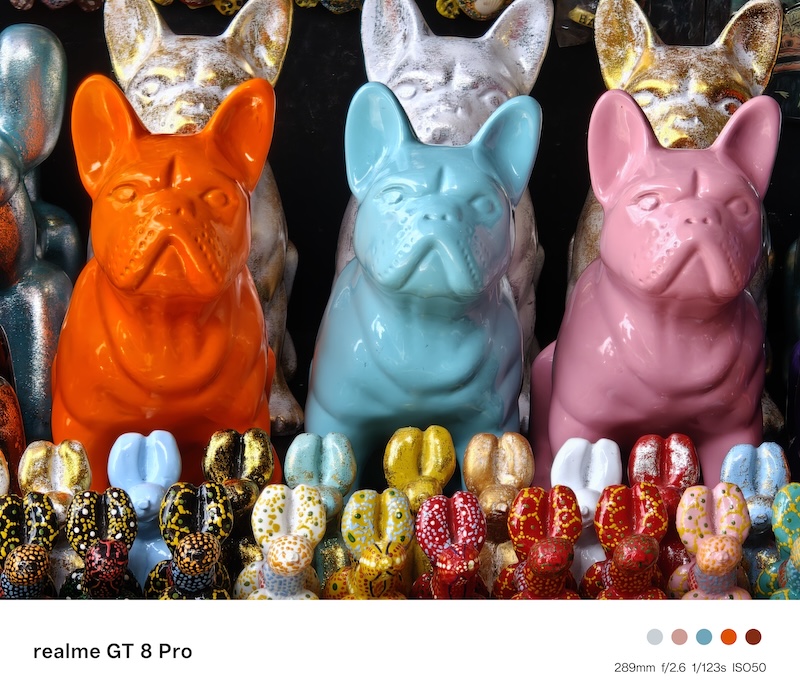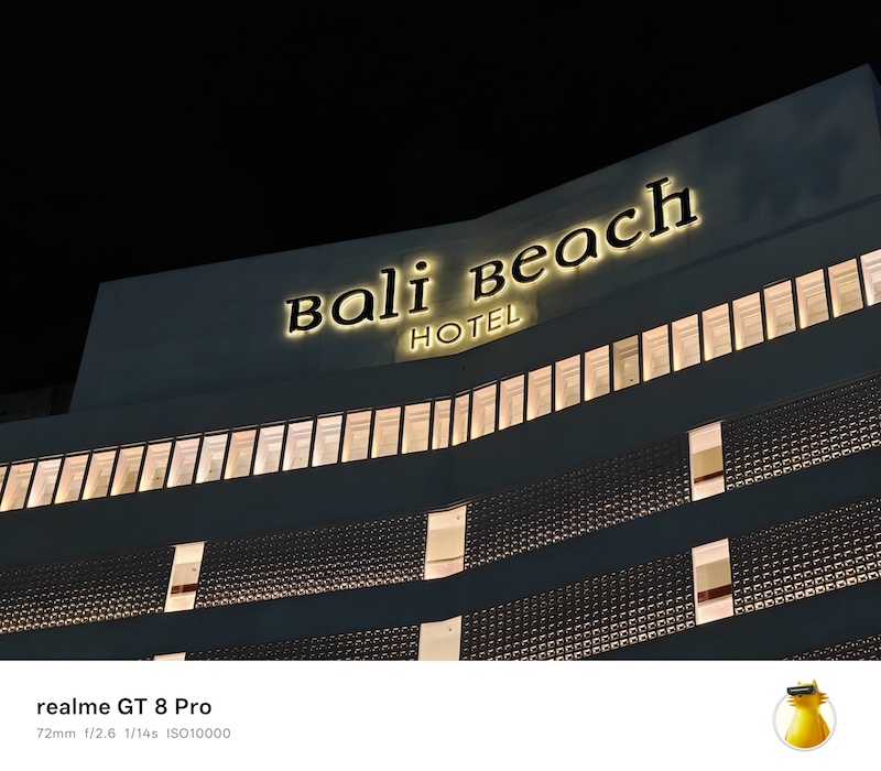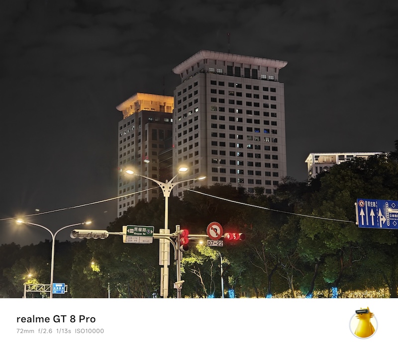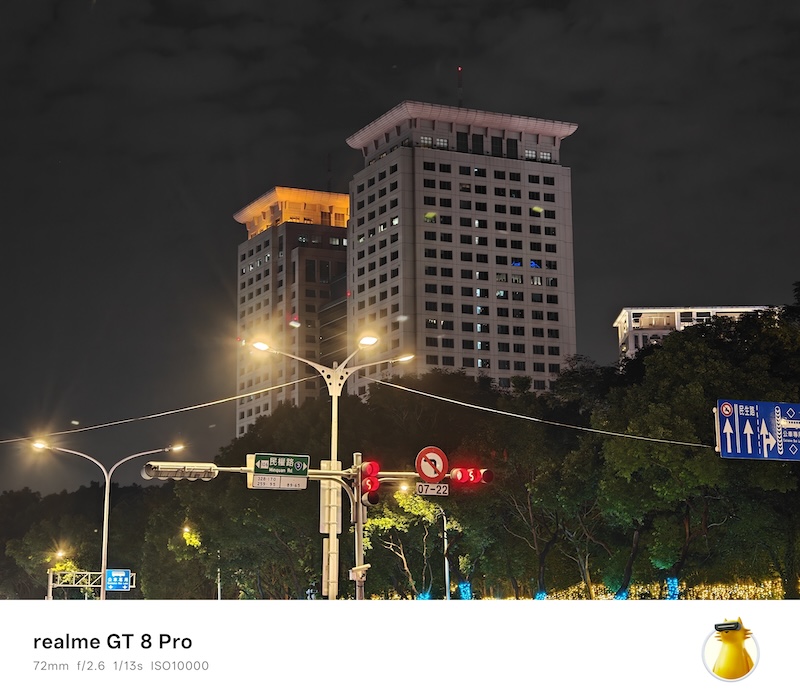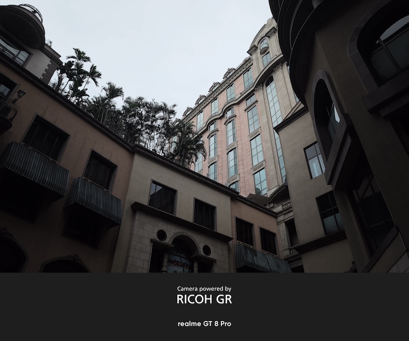 realme GT 8 Pro的正片風格在晴朗天氣下的表現最能展現其魅力,影調走向明亮且富有立體感,色彩飽和度提升得恰到好處,藍天、建築外牆與街景元素看起來乾淨俐落,畫面有一種「一拍就能用」的完成度。這種風格在旅遊拍攝或美食記錄中特別討喜,整體對比略高,讓畫面看起來更有精神。不過正片風格對光線條件相對挑剔,若遇到逆光或陰影比例偏高的場景,高光保留空間較小,暗部細節容易被壓掉,因此更適合在晴天、藍天的情境拍攝。