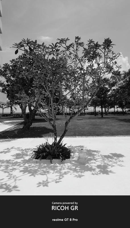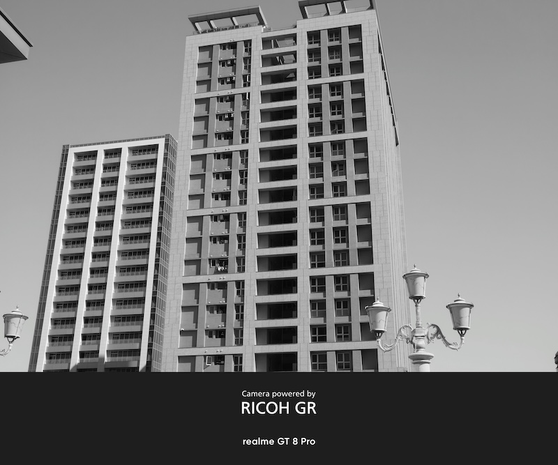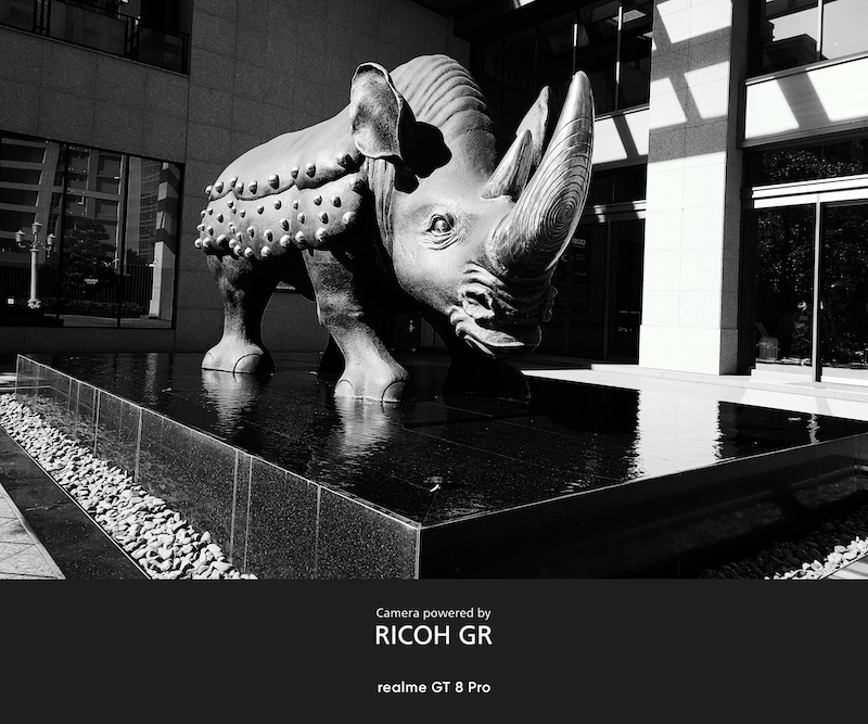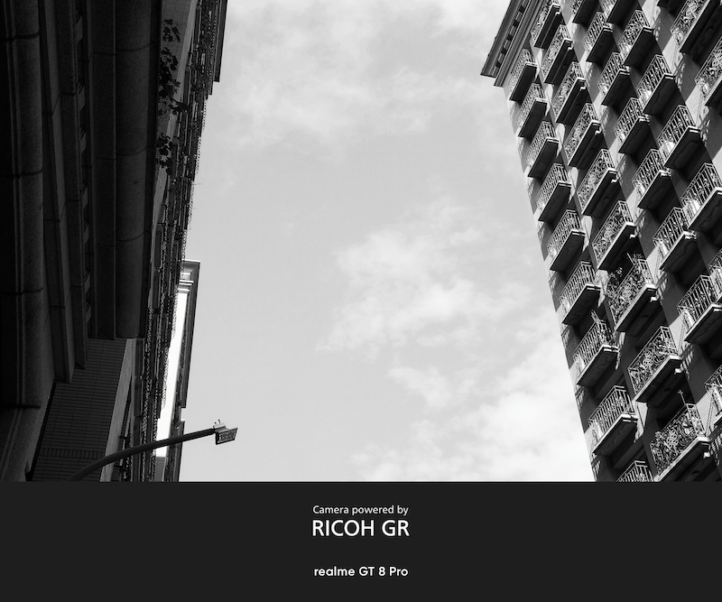 高對比黑白風格是realme GT 8 Pro五種底片中風格最強烈的一種,整體影調刻意拉開明暗差距,黑色壓得很深,白色則相當明亮,帶來強烈的視覺張力。在正午陽光直射的街道或高反差城市景觀中,這種風格能將建築線條、陰影形狀與人物輪廓表現得非常戲劇化,畫面衝擊力十足。這種風格適合有明確拍攝主題時使用,而不是隨手拍。