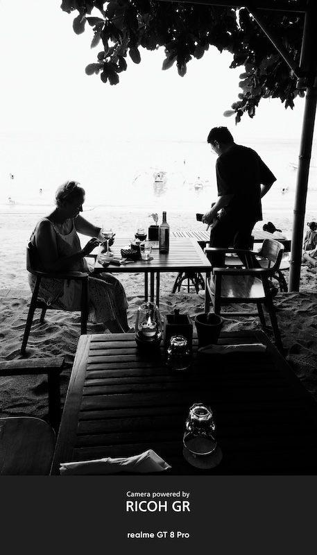 單色風格不是簡單去除色彩,而是重新塑造灰階層次與光影關係。實拍可以看出,realme GT 8 Pro在單色模式下特別重視中間調的細節表現,黑與白之間保留豐富過渡,使人物皮膚紋理、衣物質感與環境光影更加立體。這種風格在紀實肖像或極簡構圖中表現更突顯,畫面會呈現安靜卻有重量感的氛圍。不過對構圖與主體要求較高,若畫面元素過於雜亂,視覺焦點不夠明確,單色風格容易顯得平淡。