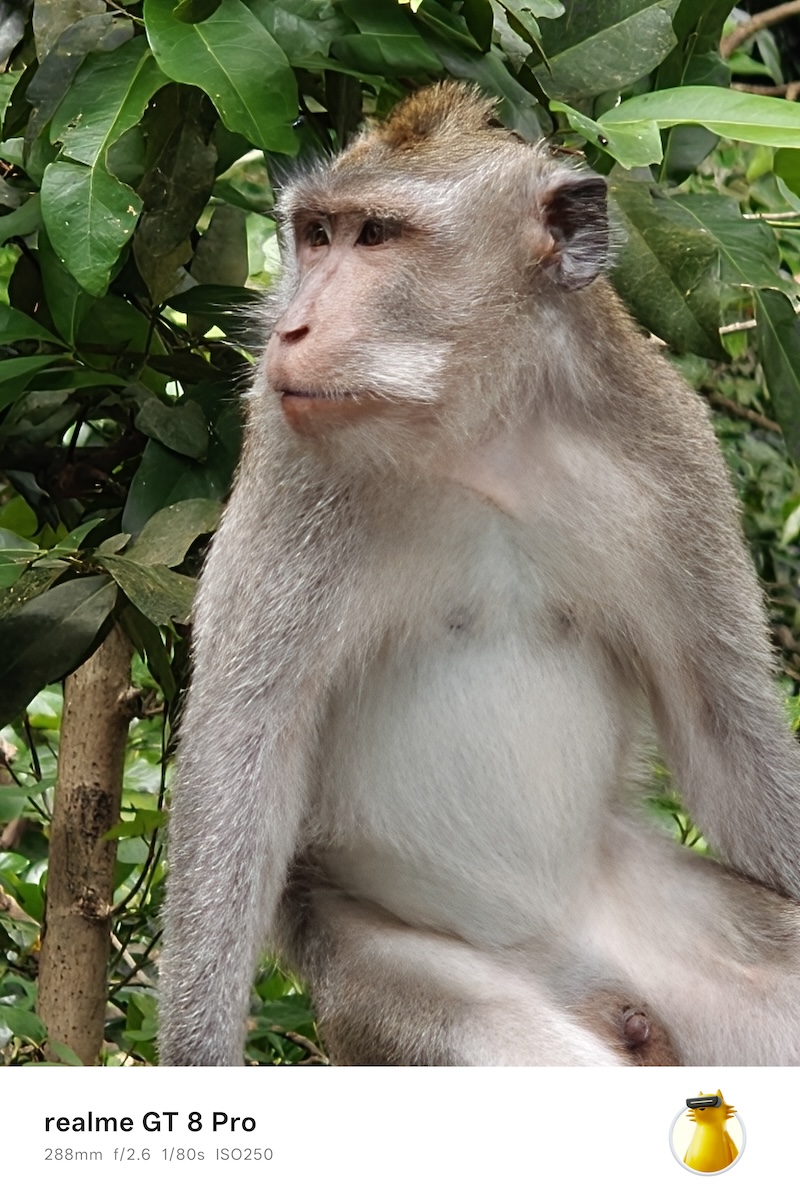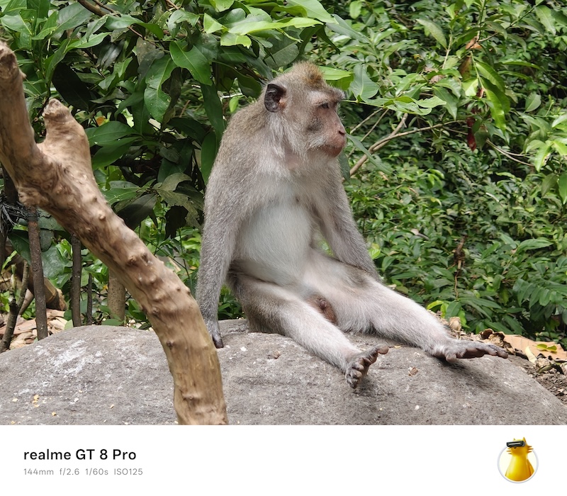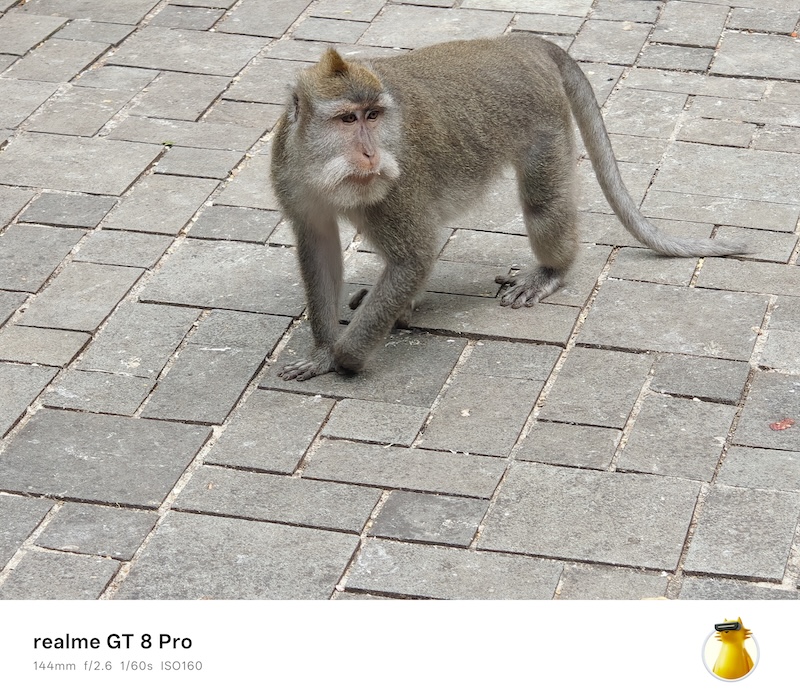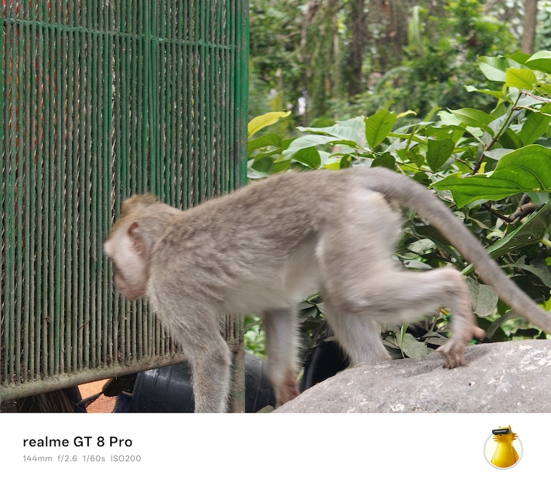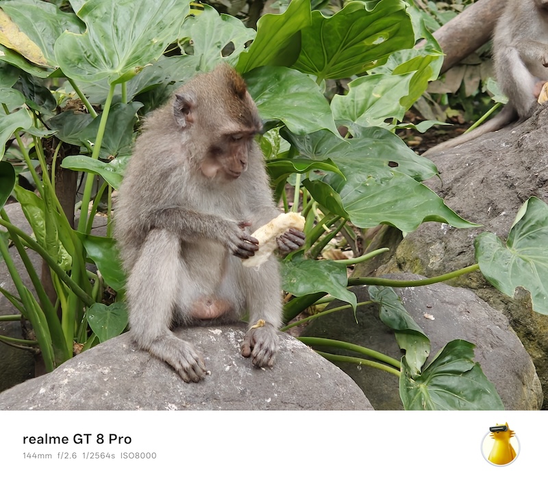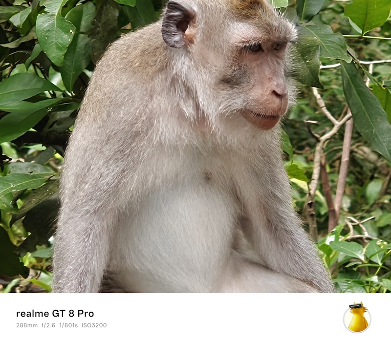 在峇里島的聖猴森林,realme GT 8 Pro使用6x或是12x拍攝森林中的猴子,開啟AI 迅馳閃拍後,可以隨手抓拍好動的猴子,且保持安全距離、不用靠太近。開啟AI 迅馳功能時,變焦最高為30x。