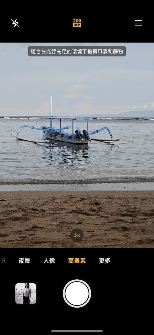 在高畫素模式中,還可以拍攝2億畫素直出的照片,但僅限於3x,畢竟只有長焦鏡頭是2億畫素。