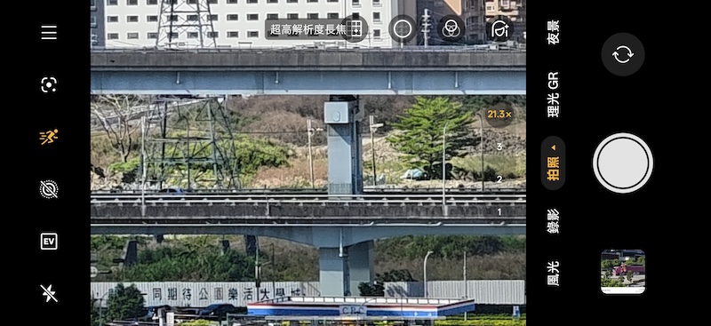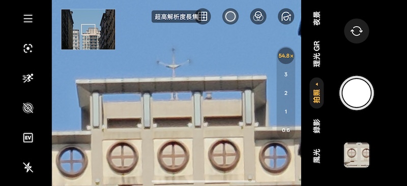 使用realme GT 8 Pro開啟60x與120x變焦手持拍攝,輸出後有AI的痕跡,整體細節依然接近實際場景。超高解析度長焦適合拍攝遠方建築或自然風景,較不推薦拍攝遠方的字體、人像。