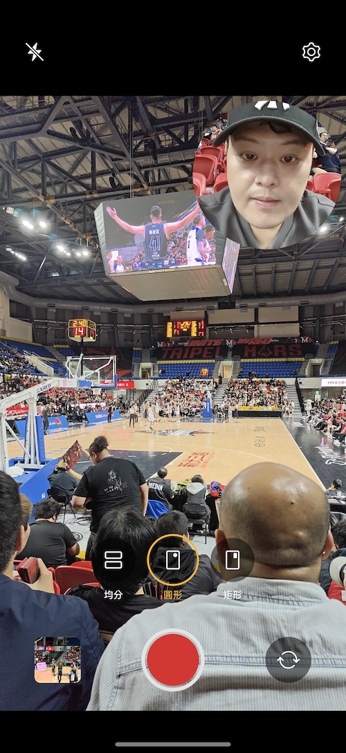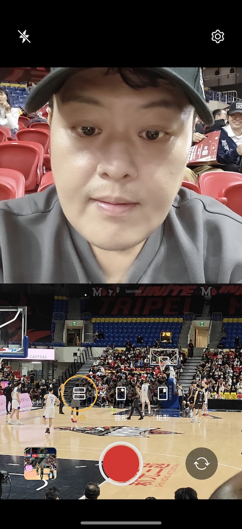 realme GT 8 Pro在「更多」中還有「多景錄影」,同時使用前後鏡頭進行錄影,並將畫面設為雙視窗,或是圓形與矩形視窗,適合在演唱會中自拍反應。