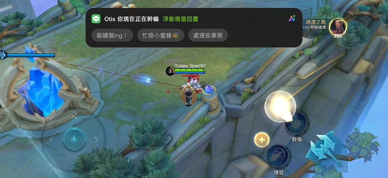按一下回覆視窗,可快速點選回覆內容,避免訊息導致遊戲中斷,卻又想要即時回覆重要的訊息。