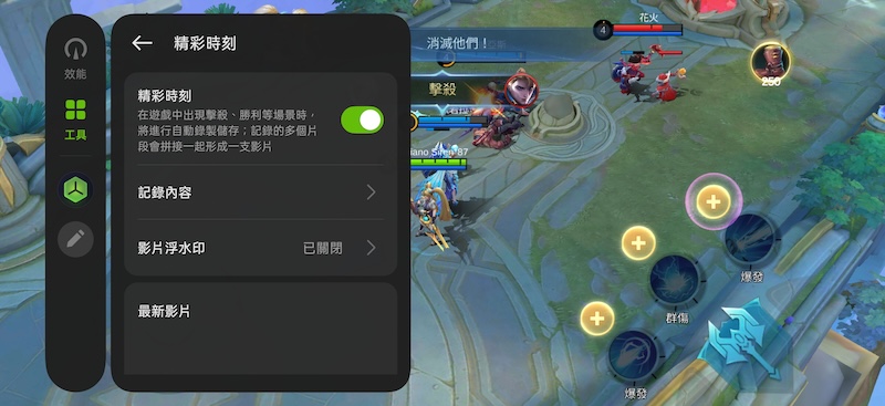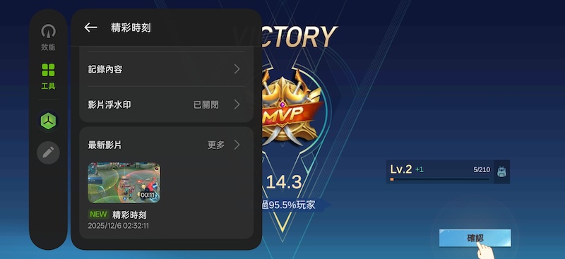 遊戲精彩時刻的影片,會自動保存在相簿中,不用手動開啟螢幕錄影功能,可快速與朋友分享。