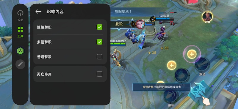 可自訂記錄的內容,包括:連續擊殺、多隔擊殺、普通擊殺、死亡時刻等。