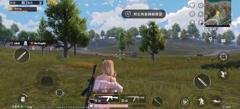 在絕地求生:刺激戰場遊戲(PUBGM)中,可進行敵人槍械類型辨識,在遊戲中系統提醒附近有槍聲時,自動辨識具體槍械,螢幕上會顯示「附近有衝鋒槍聲音」、「附近有步槍聲音」、「正南方向有人」