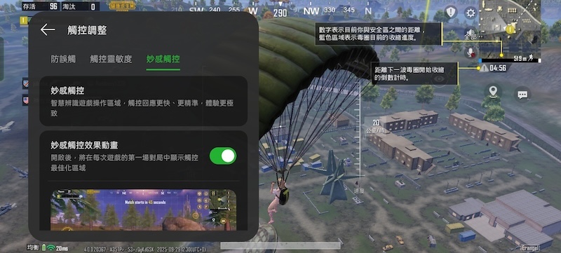 AI 妙感觸控可智慧辨識遊戲操作區域,針對玩家常用按鍵熱區進行觸控最佳化,提升觸控靈敏度,減少斷觸、延遲,讓開槍、釋放技能回應更快,讓玩家操作更加跟手,其點擊回應速度提升23%,跟手性提升10%,目前支援絕地求生:刺激戰場(PUBGM)。