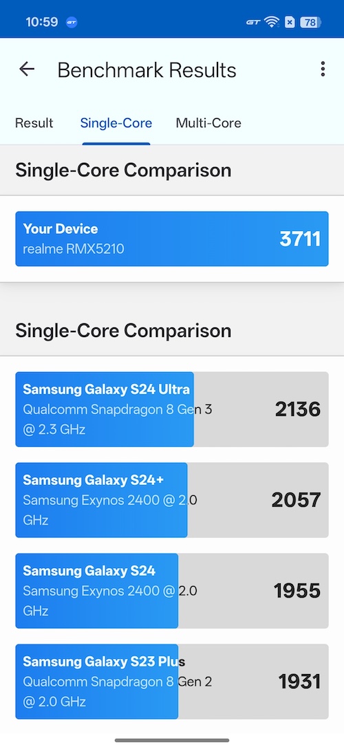 realme GT 8 Pro跑Geek Bench 6,CPU單核心得到3,711分、CPU多核心得到11,175分、GPU得到25,407分。
