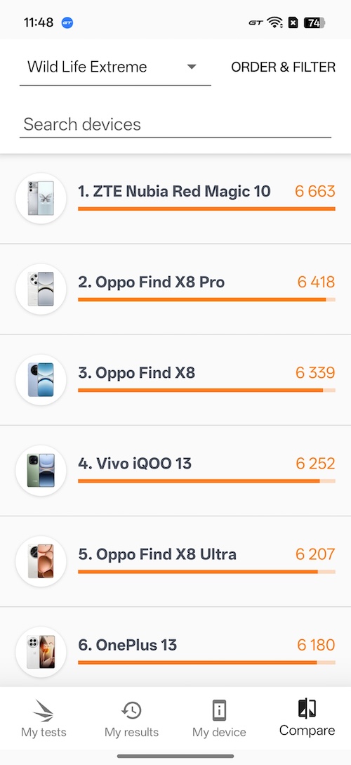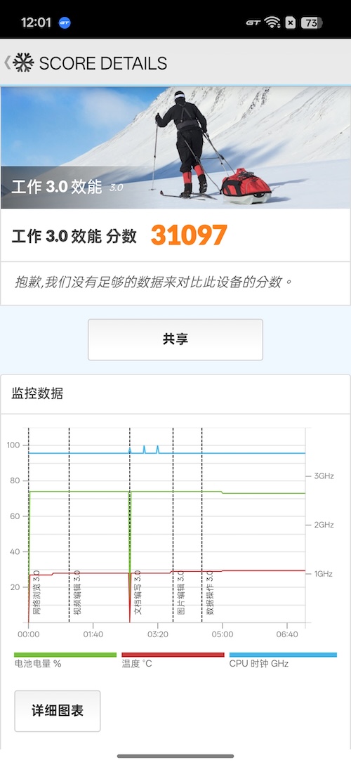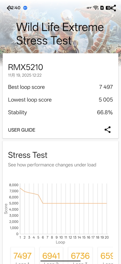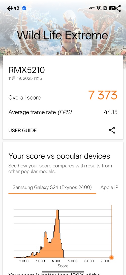 realme GT 8 Pro跑圖形性能為主的3Dmark-Wild Life Extreme,得到相當高的7,373分。