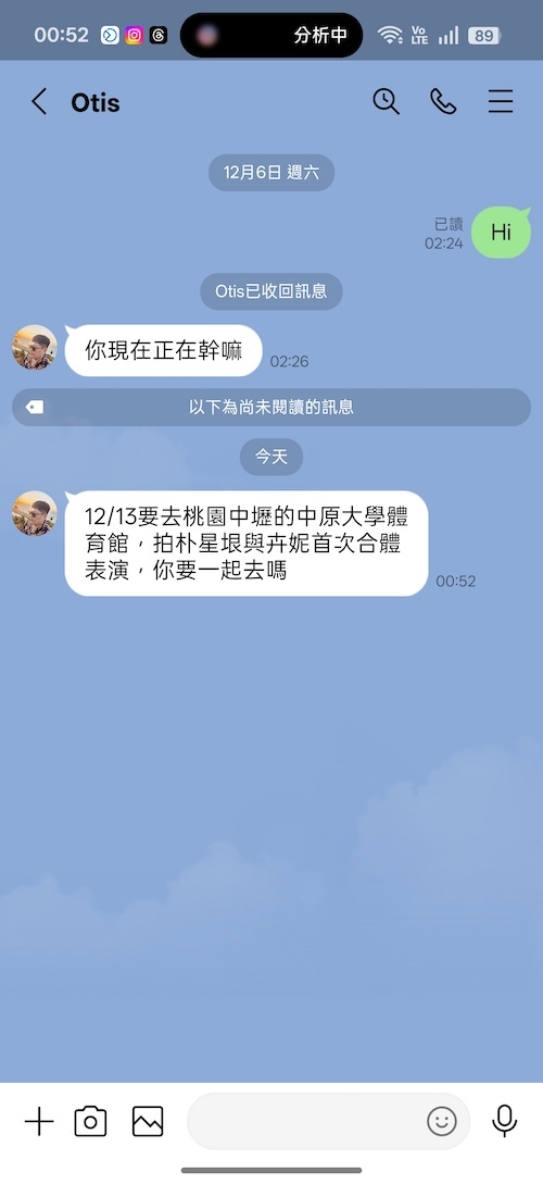 當LINE收到訊息時,會有跑馬燈從右側往左側移動。