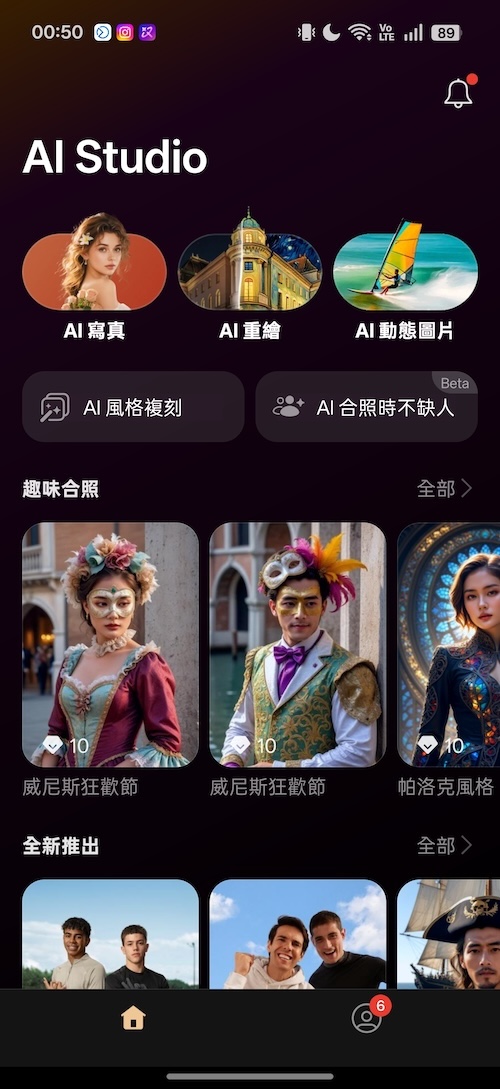 AI Studio是一個強大的AI生成App,提供多變影像風格與質感,自由添加背景或是更換髮型,無需額外下載修圖App。這項功能在其他App都需要收費,realme目前仍內建免費讓用戶使用,一個realme帳號即贈5000個寶石