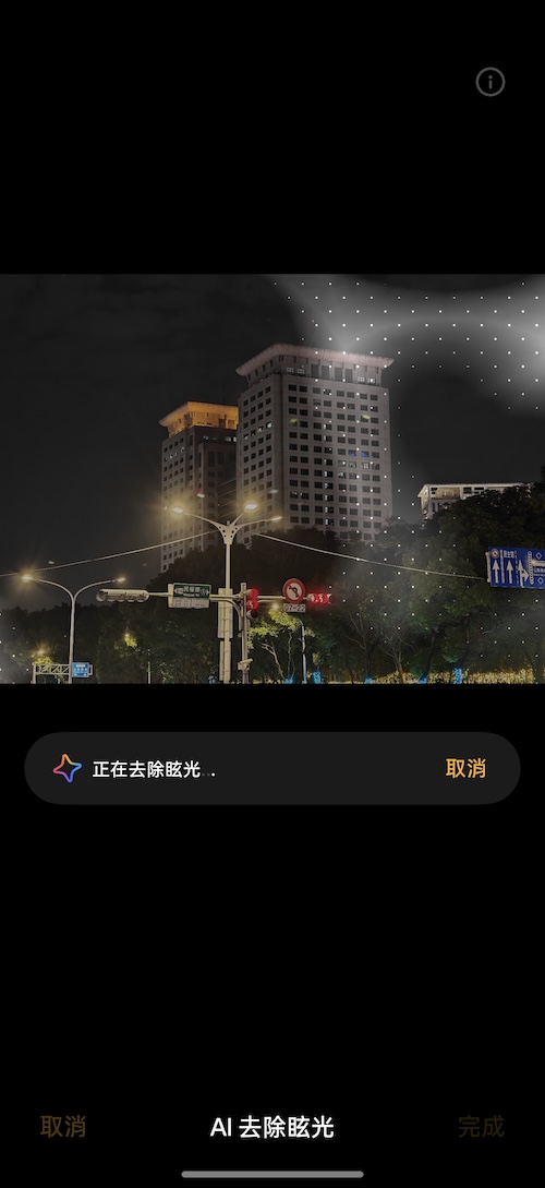 AI 去除眩光可一鍵輕鬆去除照片眩光,有時夜景會有比較亂的炫光,用realme GT 8 Pro一鍵輕鬆消除。