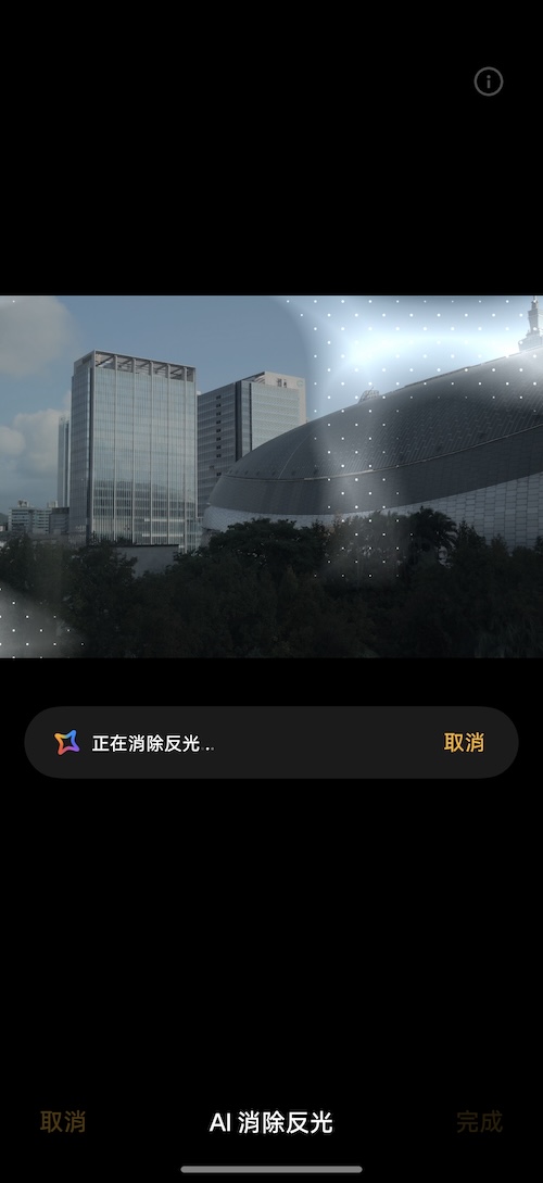 AI 消除反光可自動檢測並移除強烈反射,尤其是玻璃上的室內燈光反光,還原純淨的照片