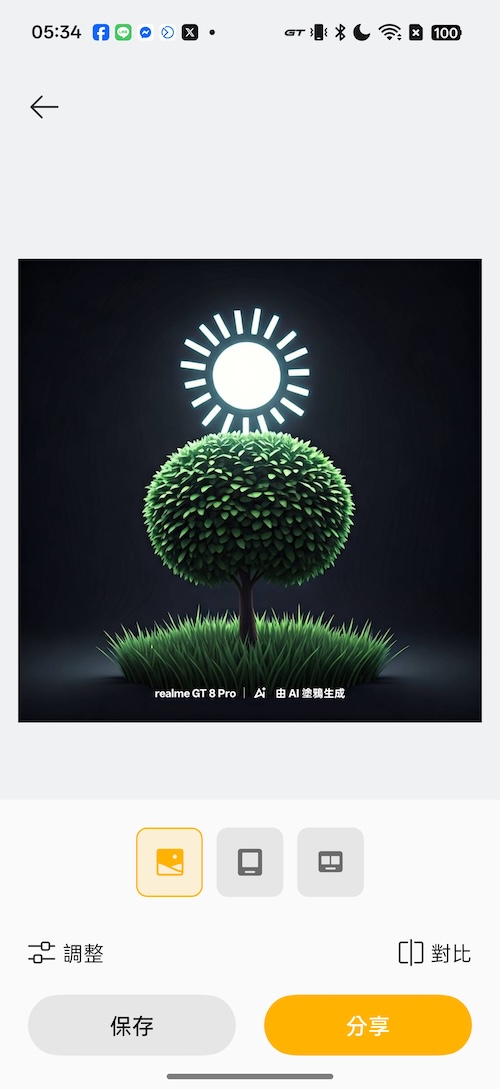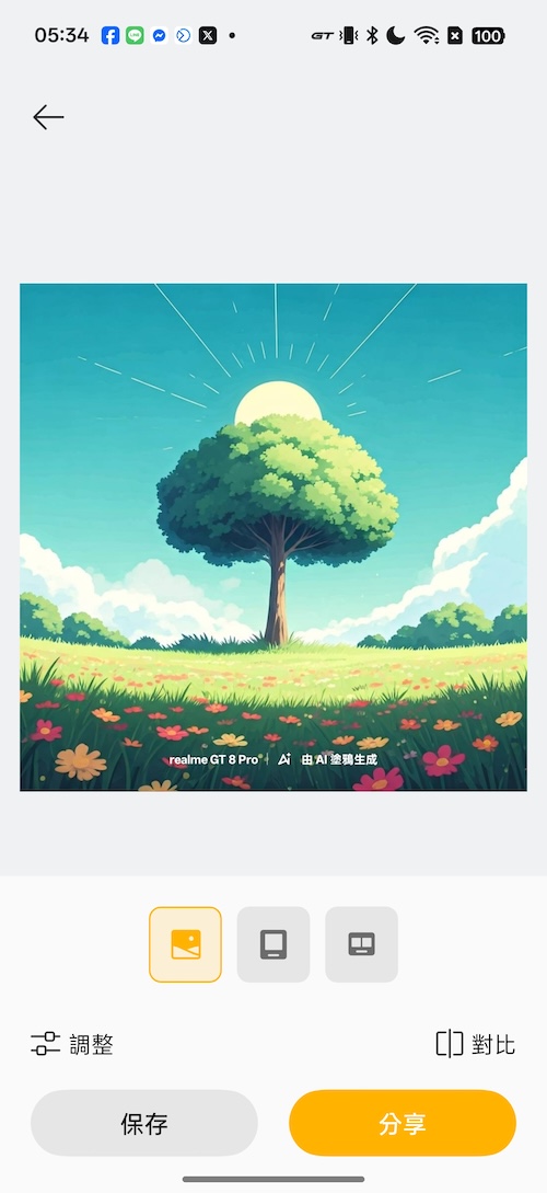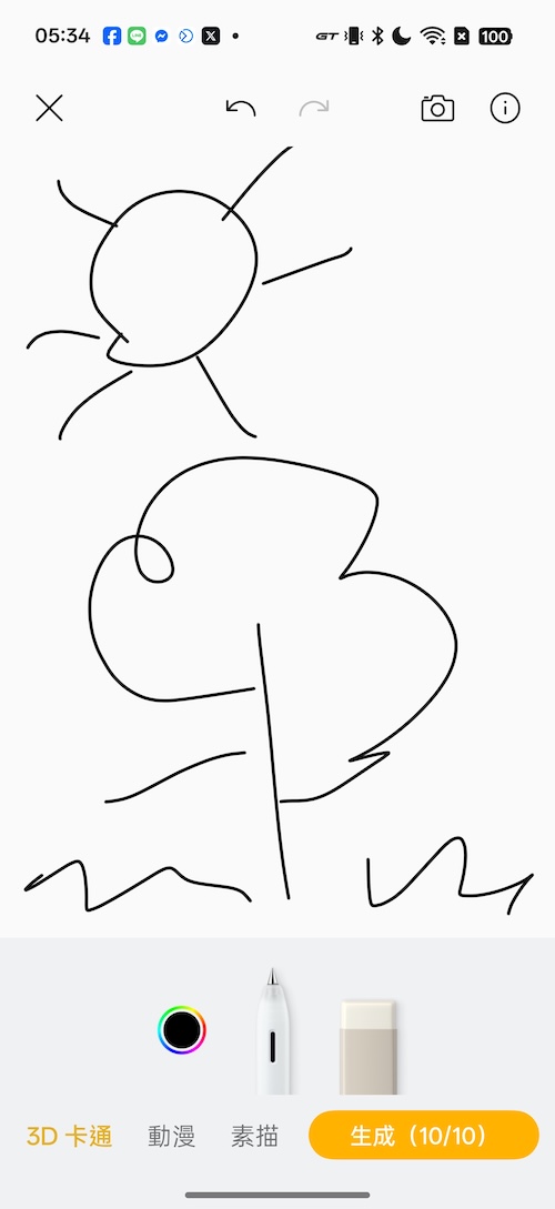 在realme GT 8 Pro內建的便簽功能中,同樣透過右邊的智慧側邊欄開啟AI 塗鴉功能,產生3D卡通、動畫、擬真、素描、未來科技、水彩六種AI 塗鴉風格,每天可以免費使用10次。