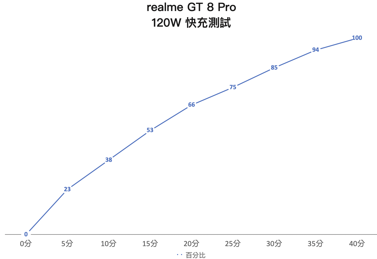 充電技術同樣頂級,realme GT 8 Pro支援120W超級閃充,從1%充至100%約需42分鐘,實測15分鐘充約53%、30分鐘充約85%。realme GT 8 Pro同時也是realme台灣市場首款支援無線充電的手機,50W無線閃充充滿電僅需79分鐘;透過10W無線反向充電,可以替其他裝置充電,像是藍牙耳機的充電盒。另外,realme GT 8 Pro還搭載旁路充電技術,在邊充邊玩時能繞過電池直接供電,降低發熱並保護電池健康,配合5年長壽電池技術,可延長手機的使用壽命。