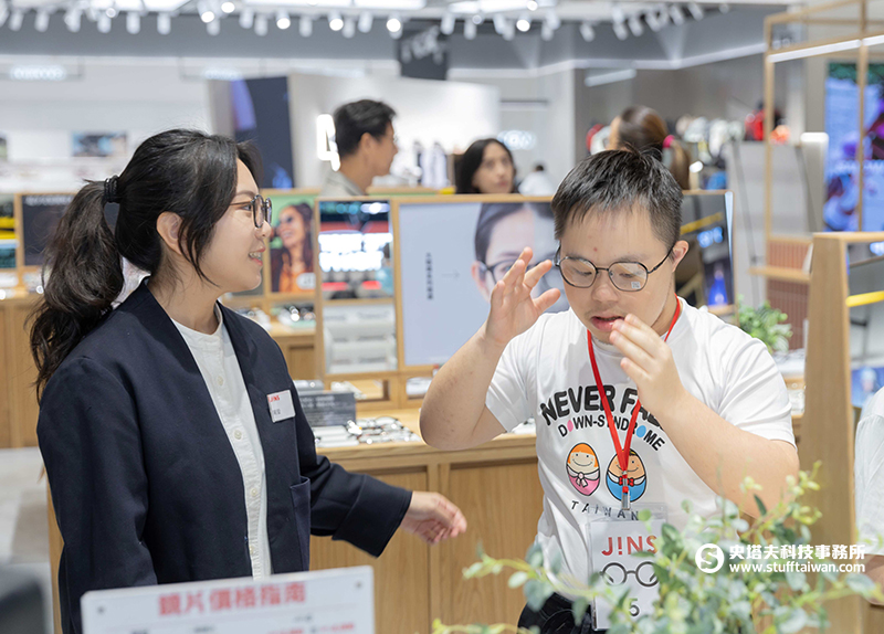 JINS台灣總經理邱明琪表示,JINS在台灣長期關注永續、環保、平權議題,得知唐氏症朋友在配鏡方面有特殊需求,特別規劃封館場地,提供安靜、無壓的環境以及充裕的時間驗光和挑選眼鏡。為了妥善服務唐氏症青年,JINS也特別調派資深和有服務唐氏症朋友經驗的驗光師到場服務。