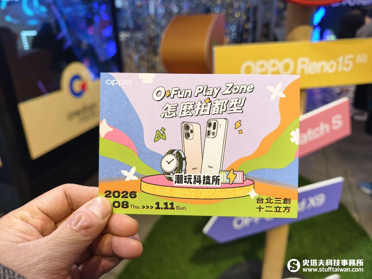自1月8日至1月11日,OPPO於台北三創生活園區「十二立方廣場」打造佔地百坪的沉浸式空間。現場以多巴胺繽紛色系結合Y2K潮流元素,全面展出包含Reno15系列、Find X9旗艦系列及Watch S智慧手錶在內的完整智慧生態系,讓科技控一鍵拍出風格大片。