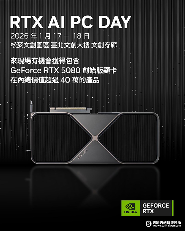 一同探索 RTX AI 驅動生活的無限可能!NVIDIA RTX AI PC DAY 體驗活動將於 1 月 17 日至 18 日在台北松山文創園區舉行!