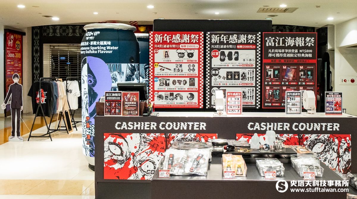 現場集結超過百款限定商品,更推出20款全新周邊商品,不論是新春限定「富江紅包袋」,還是冬季必備「多功能保溫杯」到粉絲必收的超精緻立體「書籤」,還有超優惠「新春限定福袋組」與六款「限量特典海報」,想重溫漫畫中窒息感的粉絲準備行動!