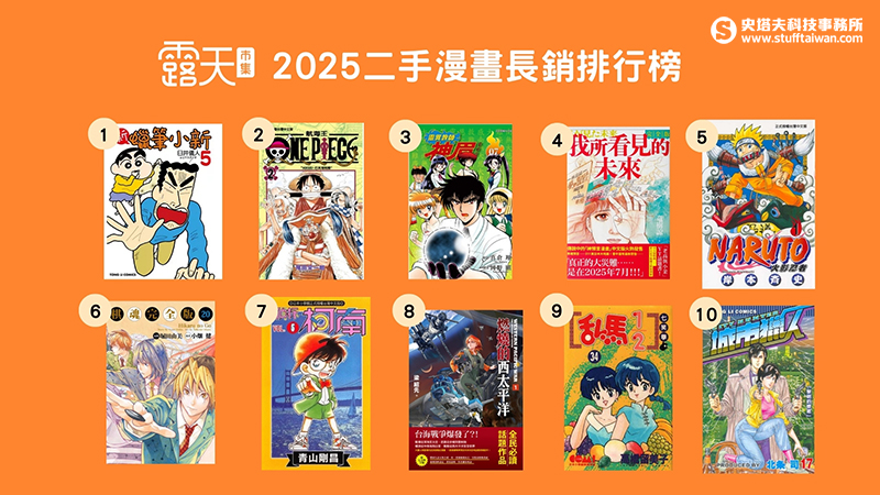 露天市集統整過去一年站上 30 大二手書核心賣場(包含讀冊、書寶等)的銷售數據,首度公布「2025年度二手書三十大長銷榜」 、「二手漫畫榜」及「二手書高價交易排行榜」,並歸納出三大長銷趨勢,不僅成功帶動 Z 世代閱讀風氣,也實質推升漫畫收藏及動漫週邊買氣與討論熱度。