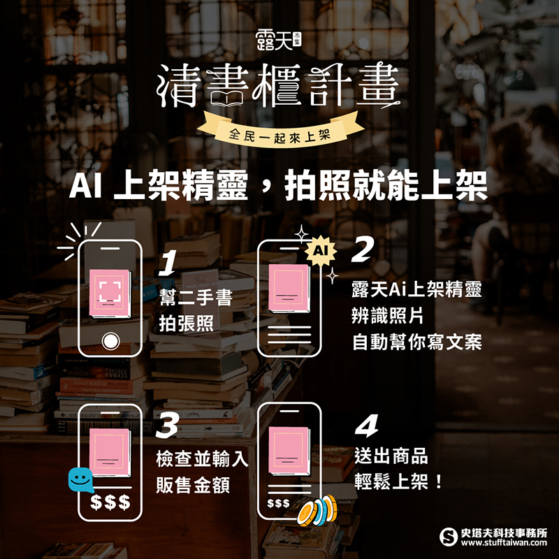 其中,賣家多為獨立二手書店與個人用戶,顯示二手閱讀早已成為一個由消費者自行推動、持續流轉的閱讀生態。為降低整理與販售的門檻,露天自去年 8 月推出「AI 上架精靈」,只要15秒即能快速協助用戶快速完成拍照、書況辨識與分類。