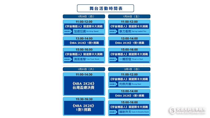 還有可愛的《宇宙機器人》場景拍照區,也同步也將展出PlayStation x Wiggle Wiggle聯名商品。此外,1月31日也將舉辦《NBA 2K26》台灣盃挑戰賽決賽,展期間同時提供PlayStation 5主機、遊戲及周邊配件等優惠銷售方案。