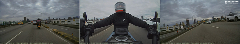 實錄照片由左至右為前鏡頭、環視鏡頭及後鏡頭