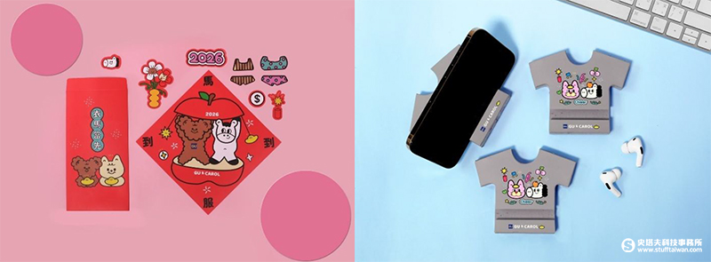 同時,呼應 GU 的自由、多元精神,品牌再度攜手插畫家「Carol Meat 卡肉老ㄙ」,以其幽默溫暖的筆觸推出兩款新春限定贈禮,替消費者點亮馬年好運: