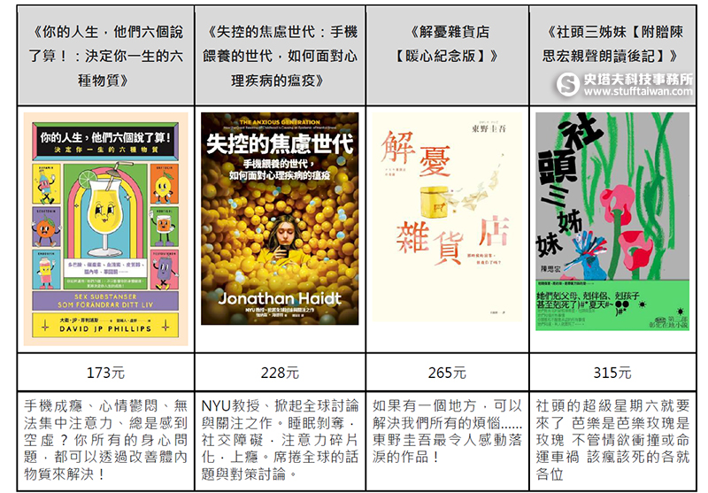 在「文學類別」方面,經典作品與本土文學各具市場。東野圭吾的《解憂雜貨店【暖心紀念版】》憑藉溫馨敘事與推理架構,持續受消費者青睞;而台灣在地作家陳思宏的力作《社頭三姊妹【附贈陳思宏親聲朗讀後記】》,則透過深厚的連結引發共鳴,顯示出讀者在數位閱讀時代,依然重視具備溫度與深度的內容產出。