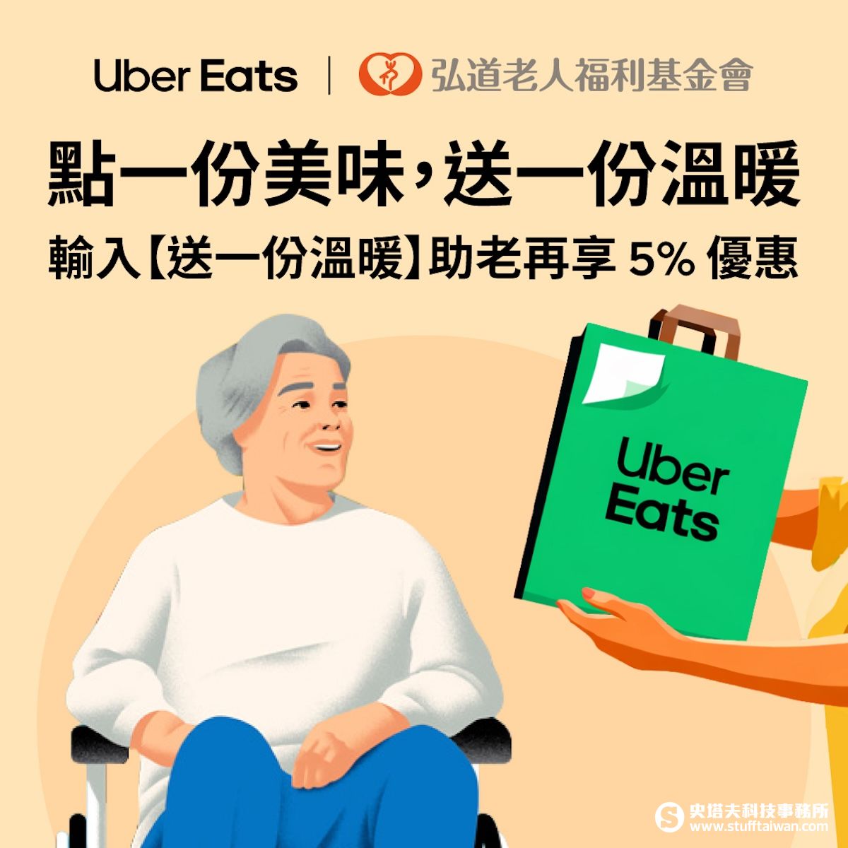 超高齡社會來臨!Uber攜手弘道推「送一份溫暖」:輸入序號助老捐百萬、揭密長者最愛外送美食